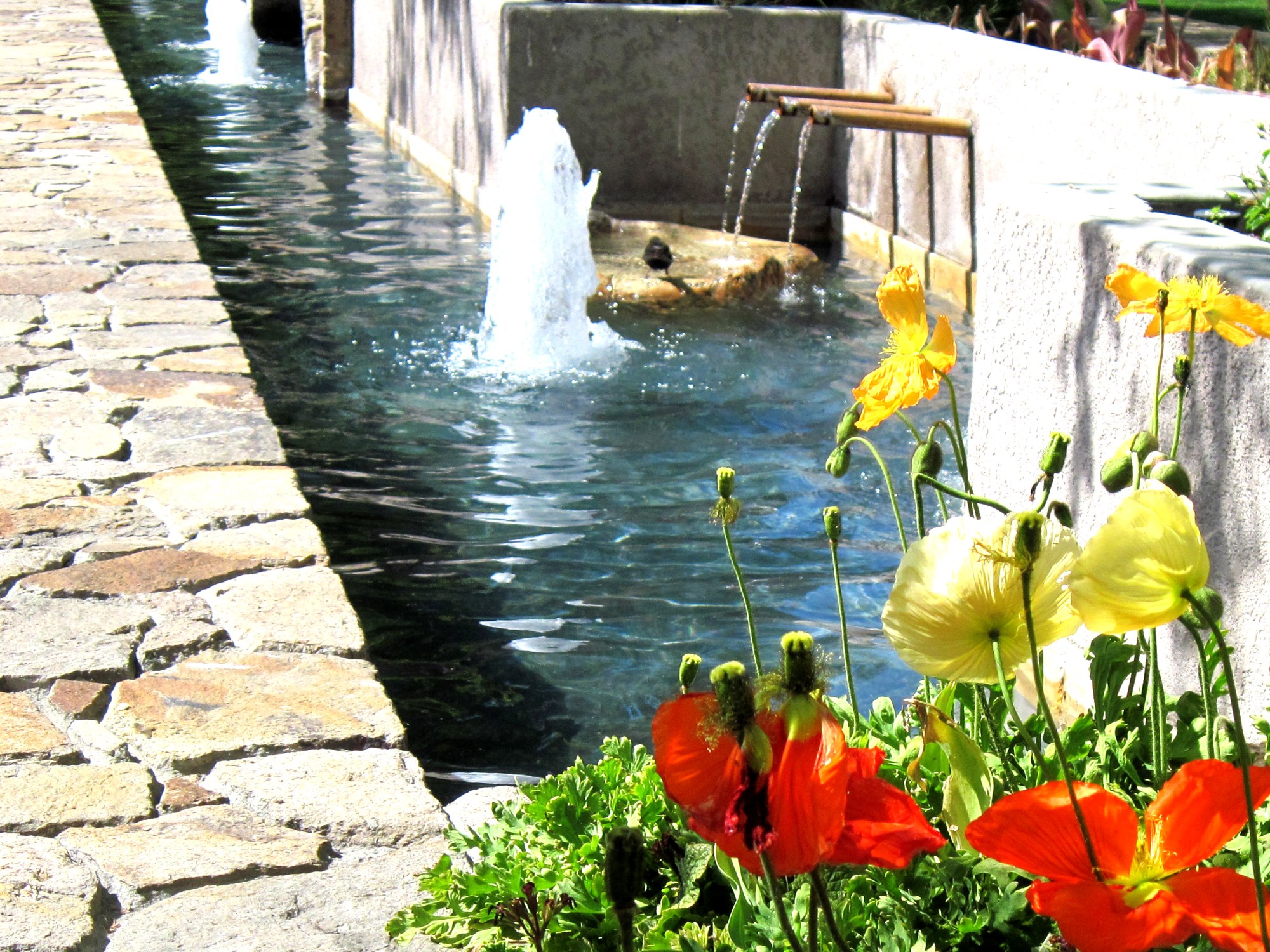 I adore traveling, even if it’s only two hours away. This lovely soothing fountain is located at the V 1870 Marketplace in Yountville, CA. There are lots of cute little boutiques, art galleries, wine tasting, and delicious food in a historic building dating to 1870. The building is surrounded by gorgeous landscaping featuring California poppies that were just reaching bloom when we happened by. When traveling between Napa and Calistoga, this is one of my must-visit places. Find out more on the website.