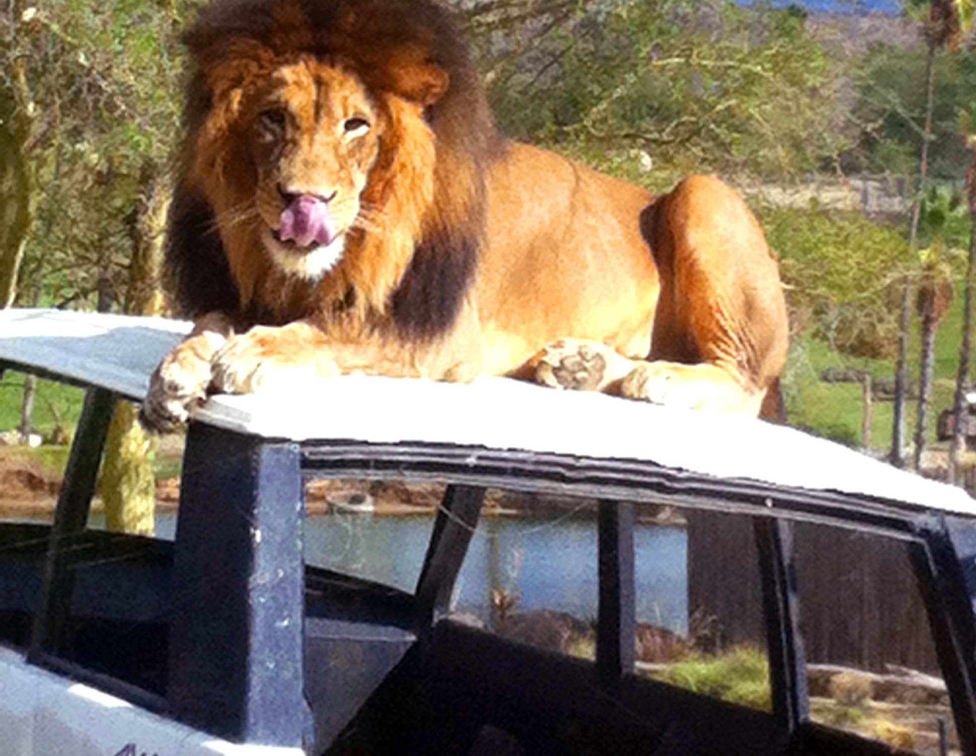 One of the things I like to do when I travel, is to visit the local zoo, animal park, or aquarium. San Diego, a city I lived in for a decade, has two of the best zoos on the planet. When I lived in the area, I had a membership and frequently visited both. Over the past five years, the Safari Park has undergone upgrades, expansions, and an overall improvement in the experience. One of my favorite changes they made was to craft a whimsical scene within their lion exhibit. Here’s the king casually lying on an abandoned 4×4, perhaps after a quick snack of tourist? What fun for kids of all ages. The fact that’s licking his lips, just makes this photo that much better. Ummmm. I wonder what’s on the menu for desert?