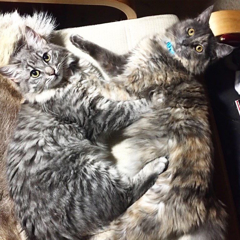 I welcomed a pair of kittens into my home the week of Christmas! This is Silver on the left, a boy on his way to being a big Maine Coon style beast, and his sister Stormy who is much smaller with a playful disposition.